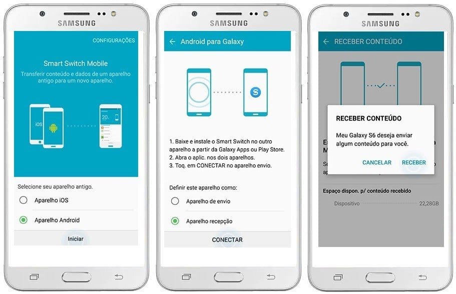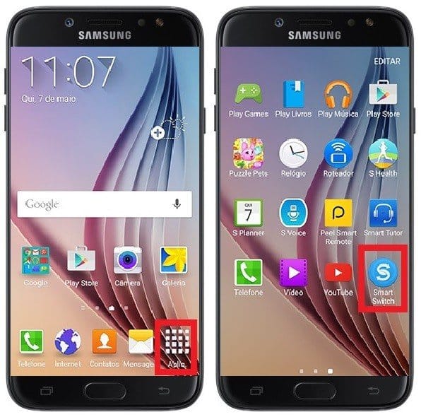 1 – Primeiro será necessário fazer a instalação do Aplicativo “Smart Switch” nos 02 aparelhos.