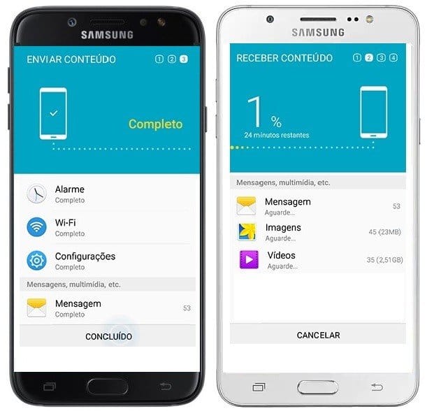 8 – Note que o processo começou a ser executado nos dois aparelho. Quando terminar, clique em “Concluído” em ambos.