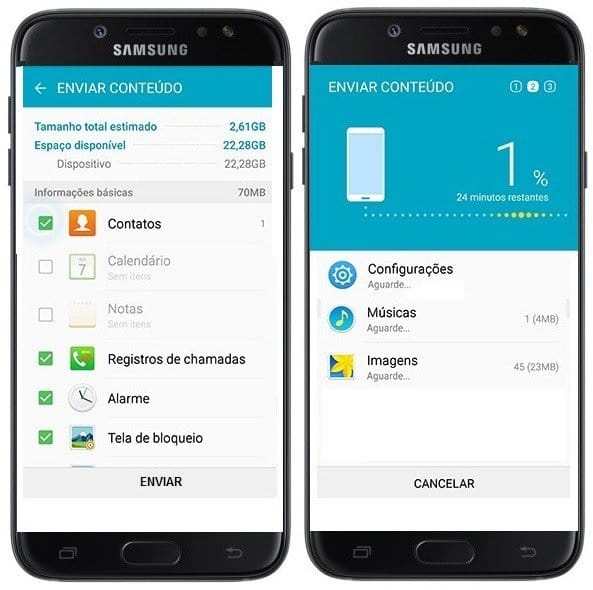7 – Volte no antigo dispositivo, selecione marcando cada caixa dos dados que você quer transferir para seu novo aparelho e toque em “Iniciar” para começar a transferência.