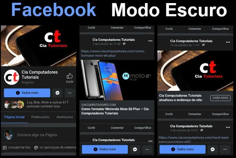 Abaixo algumas imagens da aparência do perfil da nossa página depois de aplicado o procedimento do modo escuro alternativo.