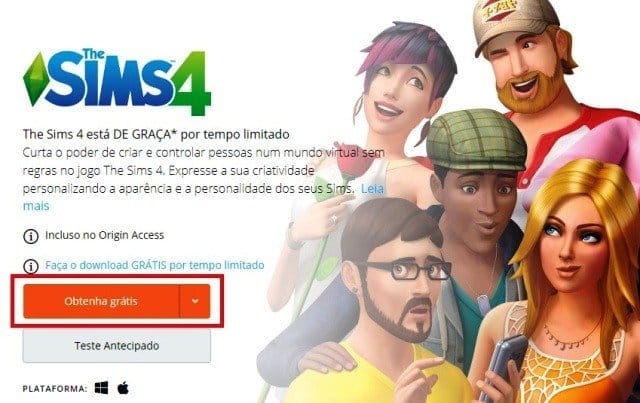 Depois desta etapa você estrá apto para adquiri gratuitamente a versão gratuita do The Sims 4 para jogar no seu computador.