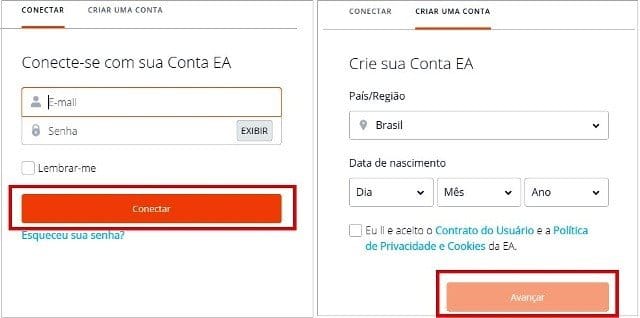 Primeiro será necessário conectar-se na conta EA. Mas se você não tiver uma, pode acessar AQUI e criar a sua em poucos minutos.