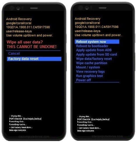 6 – Para acabar o procedimento e reiniciar o seu Google Pixel 4, selecione a opção “reboot system now” e confirme.