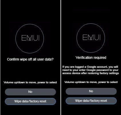 5 – Toque novamente em Wipe data/factory reset. Outra vez toque para confirmar em Wipe data/factory reset.