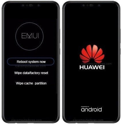 5 – Espere até que o processo de “Factory reset” carregue em 100%. Com procedimento da formatação da memória interna concluída, toque em “Reboot system now” para reiniciar o Huawei Nova 3i.