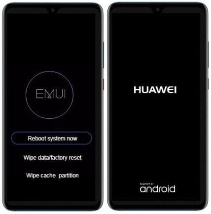 6 – Voltando a tela inicial, selecione “Reboot system now” usando a tecla Power para reiniciar seu Huawei Nova 4.