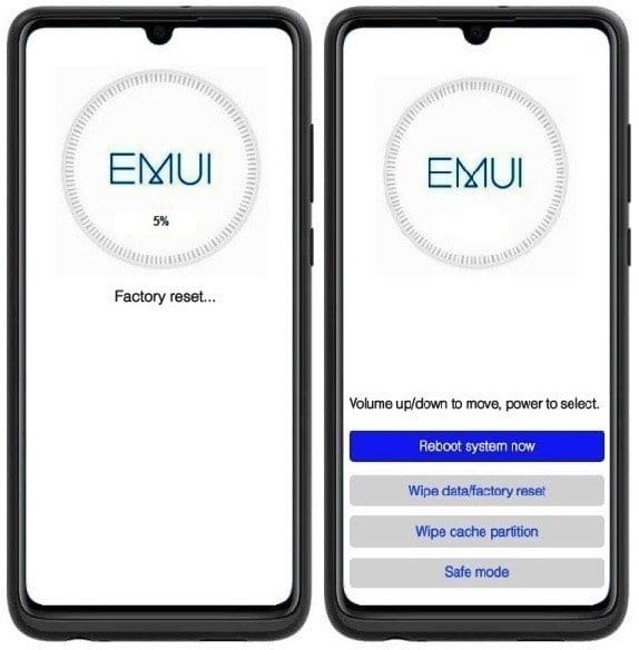 5 – Espere até que o processo de “Factory reset” no seu Huawei P30 Pro seja concluído.