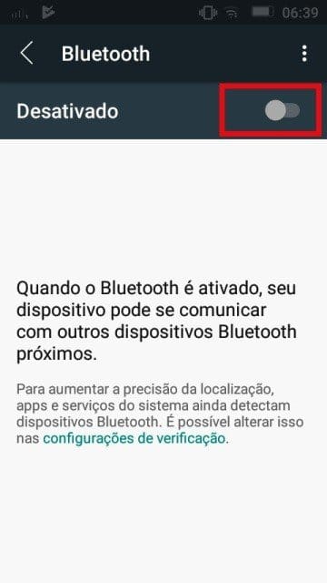 2 – Agora acesse as configurações de redes do telefone e desative a função o Bluetooth.