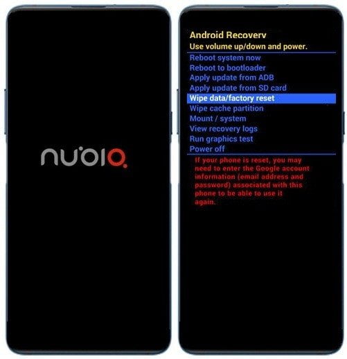 3 – Assim que aparecer a logomarca Nubia, solte todas as teclas e aguarde entrar no menu do Android Recovery.