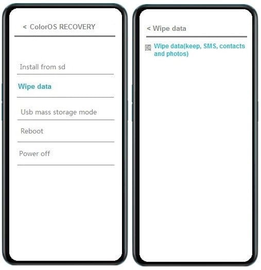 4 – Depois toque em “Wipe data“, em seguida na opção “Wipe data (keep,SMS,contacts and photos)” e confirme em “OK“.