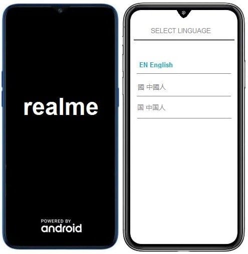 2 – Quando aparecer a logomarca “Realme” na tela do telefone, solte somente o Power e continue pressionando o Volume Menos. Libere a tecla quando entrar na tela para selecionar o idioma.