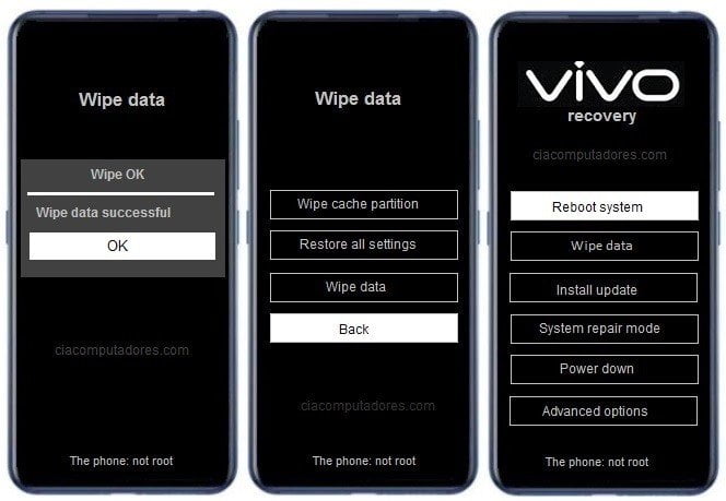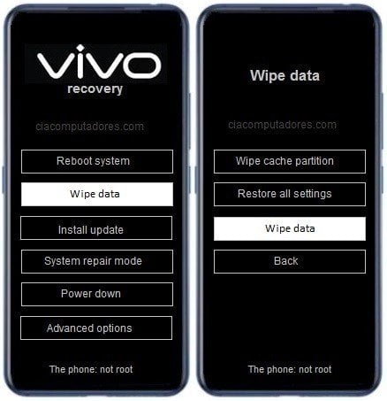 4 – E novamente selecione com a tecla de Volume a opção “Wipe Data” e confirme-a com o botão Ligar/Desligar. Agorá é só aguardar a formatação acabar.
