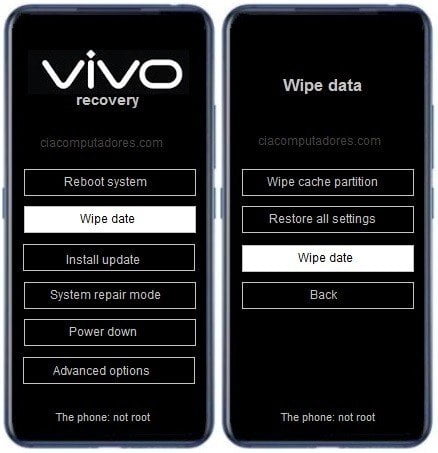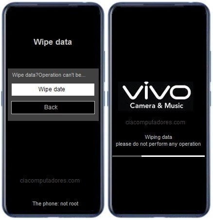 5 – Continuando… selecione a opção “Wipe data” e confirme.