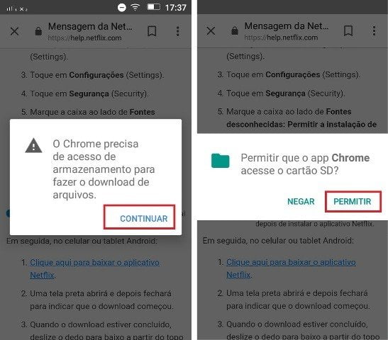 3 – Clique em “Permitir” para baixar o arquivo no cartão SD.