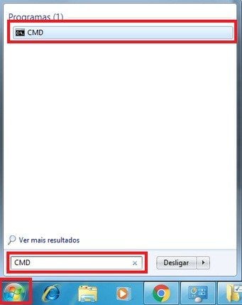 5 – Feito isso, abra o “Prompt de Comando”. Para abri-lo digite “cmd” na pesquisa do Iniciar do Windows e clique sobre o item.