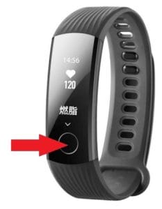 1 – Verifique se a sua Huawei Honor Band 3 tem carga suficiente na bateria. Depois pressione o botão na tela para desbloquear a pulseira.