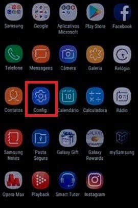 1 – Na tela inicial do telefone toque menu de aplicativos e depois selecione a opção “Configurações“.