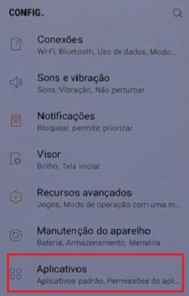 2 – Role para baixo a tela do seu aparelho e toque em “Aplicativos, Aplicações ou Apps“.